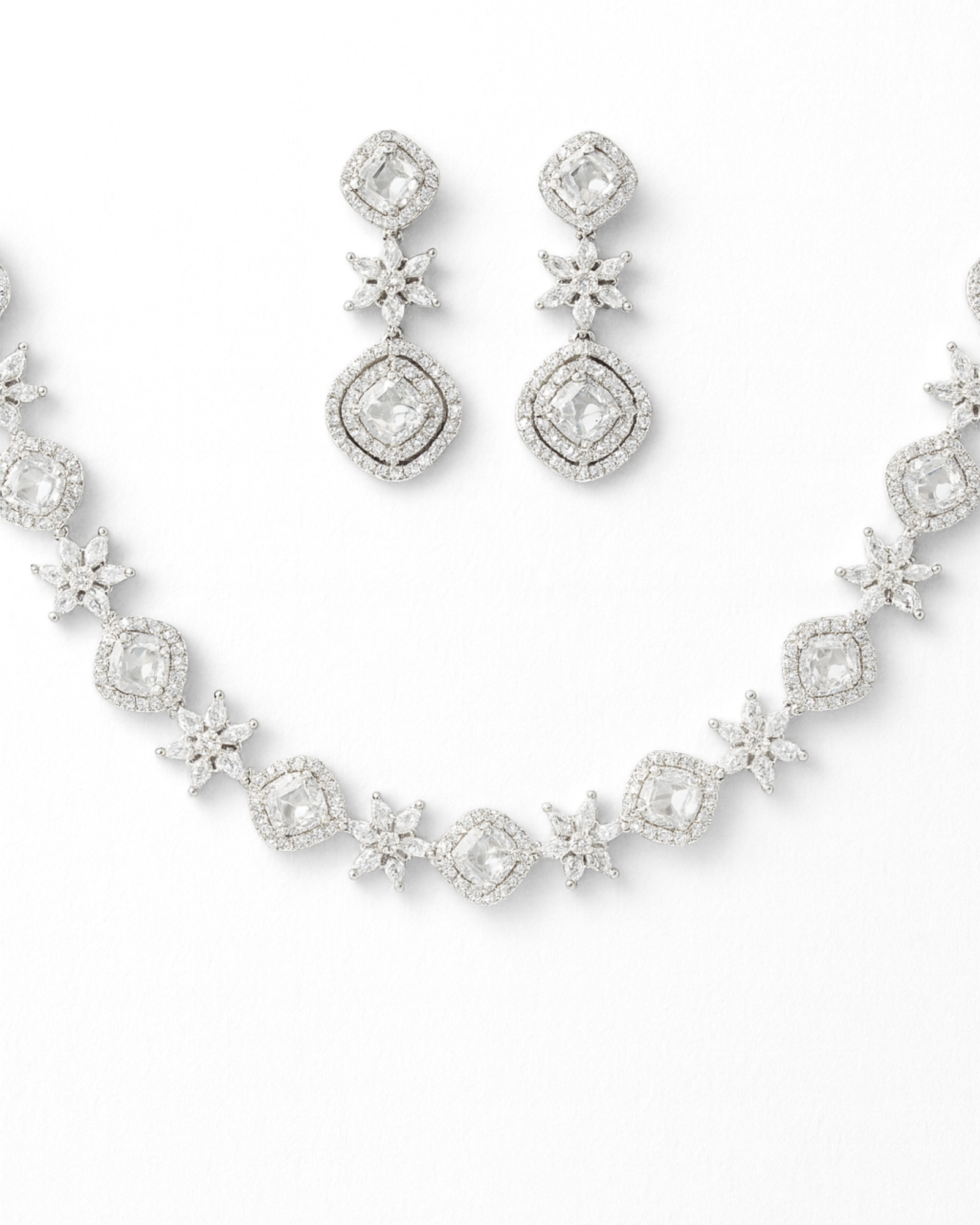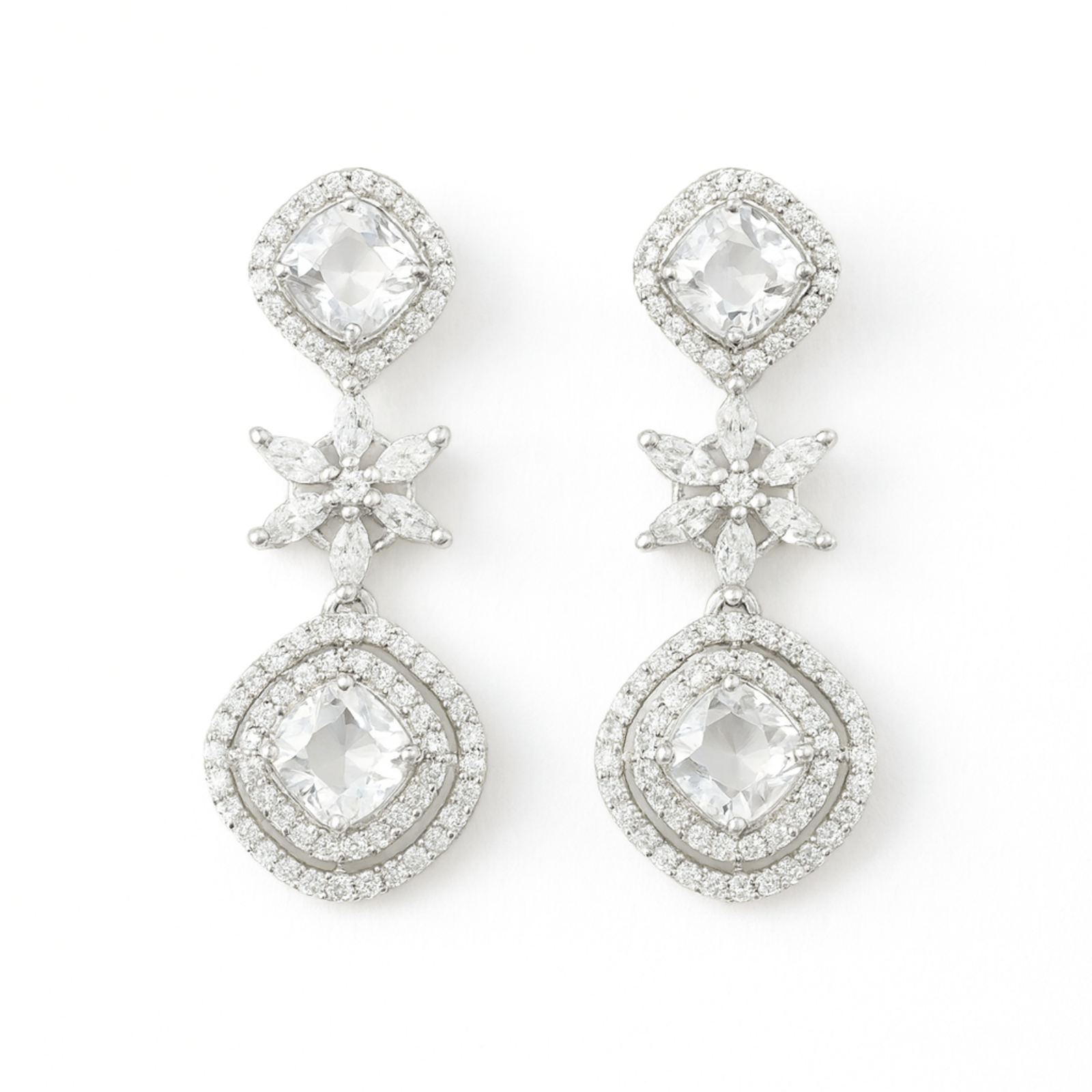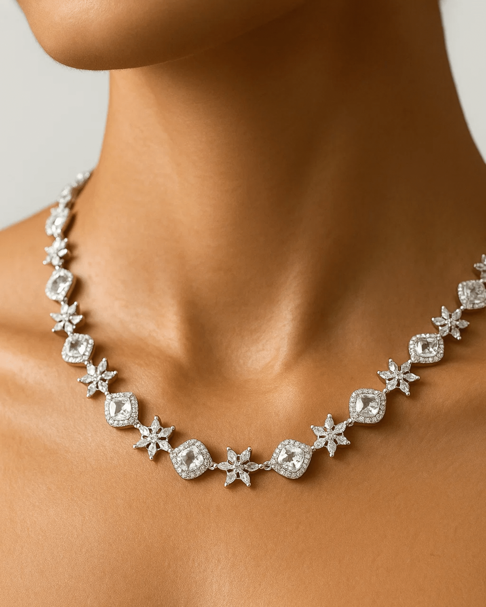 Modern sparkle with cushion-cut clear crystals and twinkling starburst motifs—elegant, bright, and versatile.