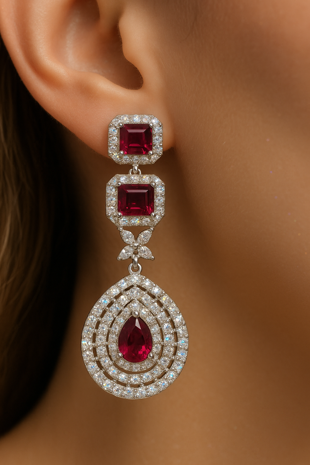 Dual-layer ruby design with teardrop pendant