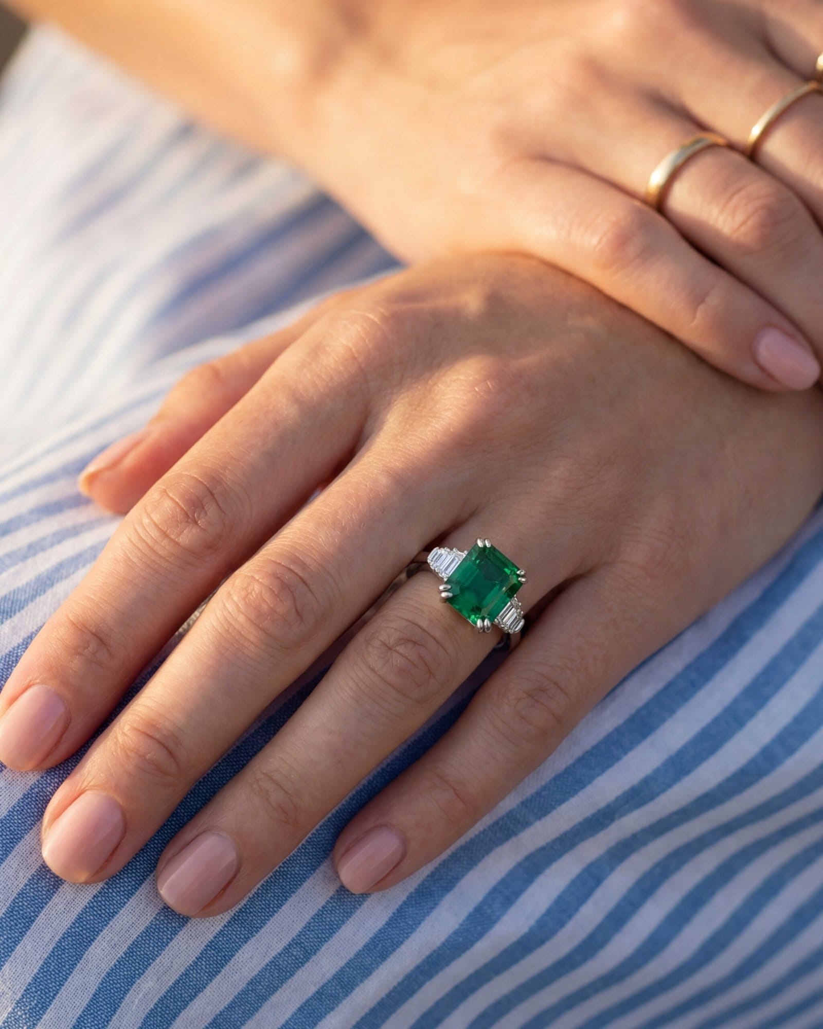 - Side Stones: Step-Cut White Stones