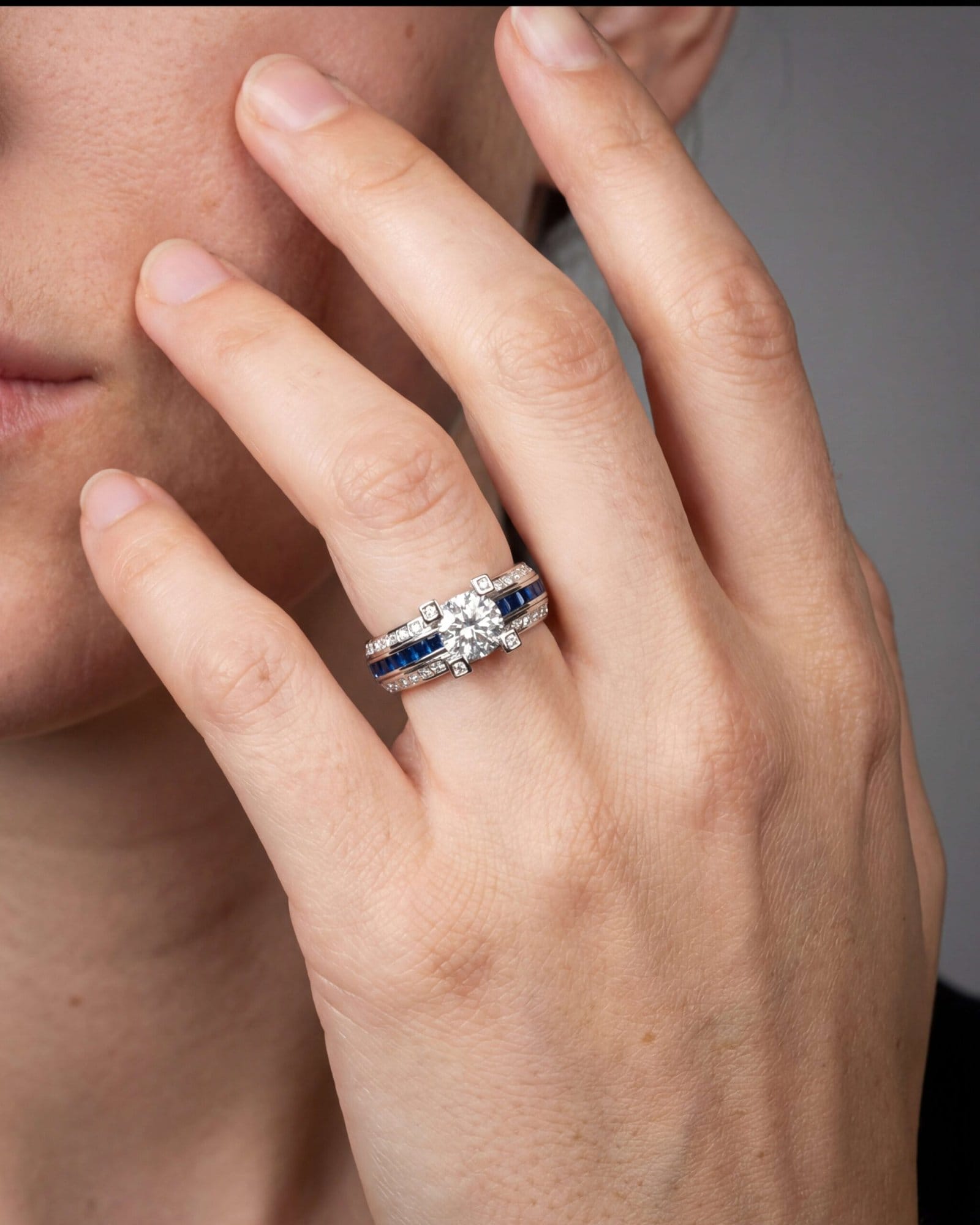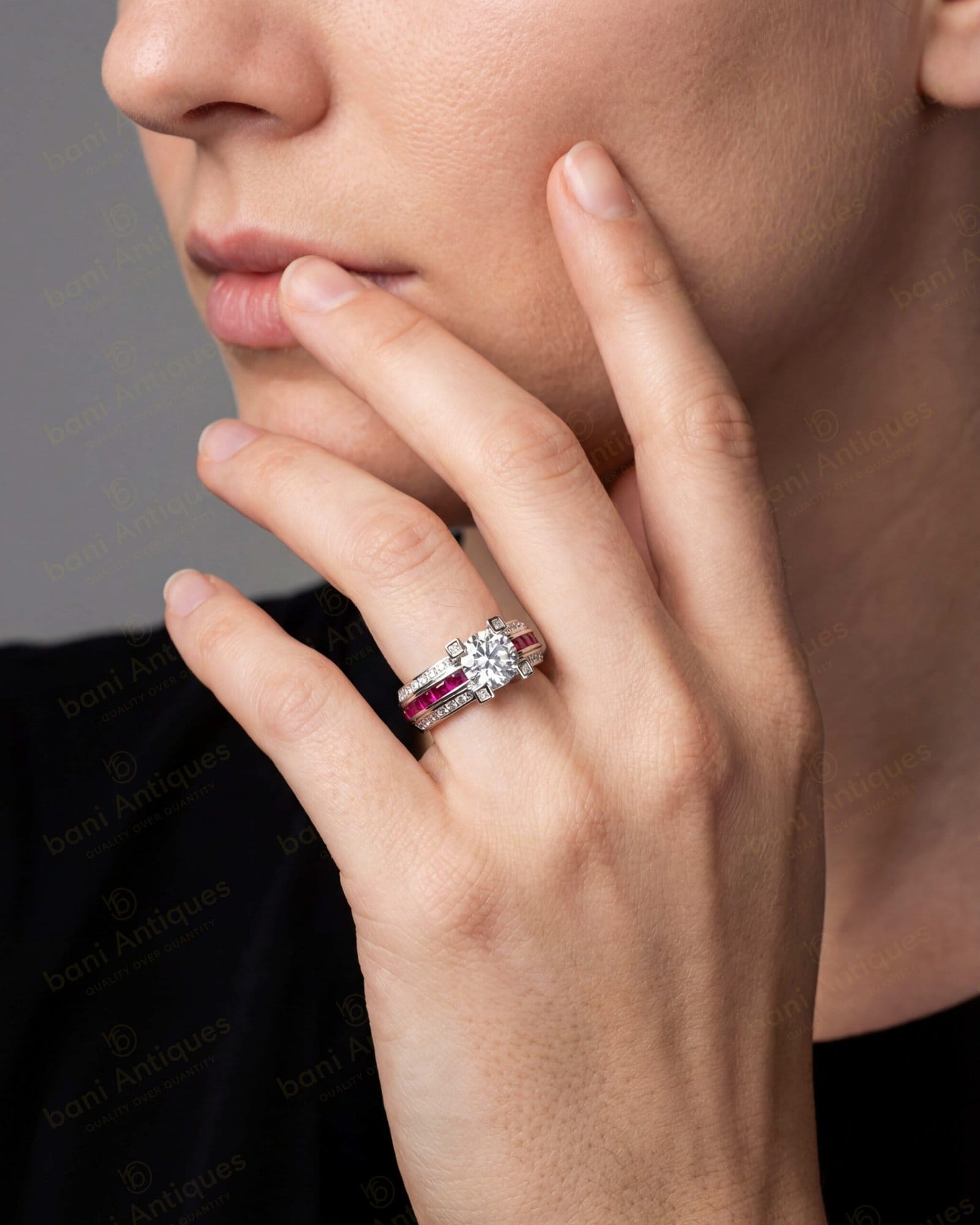 - Center / Feature Stones: Red Rubies or Blue Sapphire