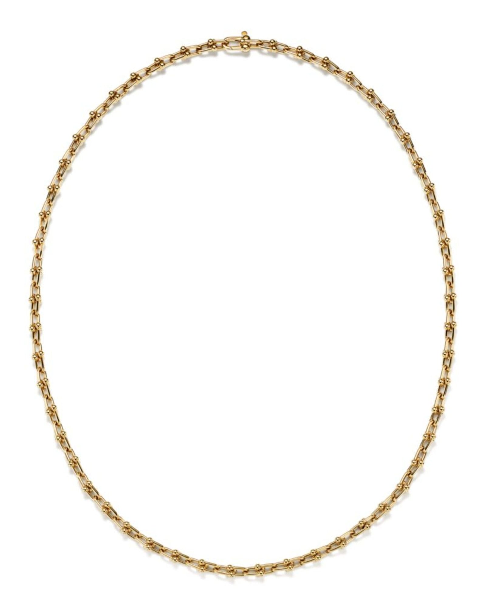 Tiffany HardWear necklace in real 18k thick gold plating (not electroplated), featuring the signature micro gauge link design. At 16 inches, it offers a bold yet refined look for women. Premium craftsmanship ensures authentic color, luster, and weight, backed by a one-year color-retention warranty.