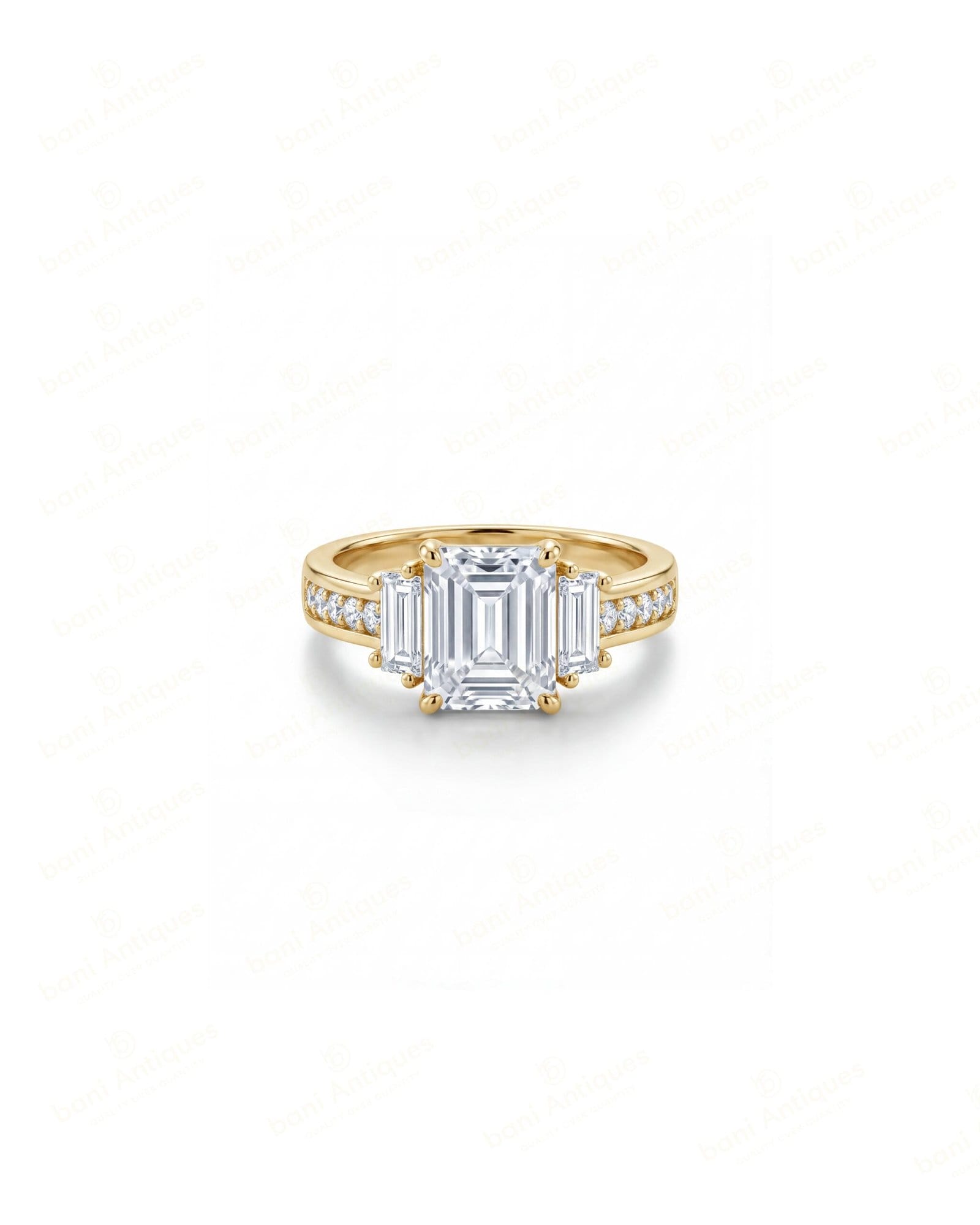 - Side Stones: Matching Emerald-Cut American Diamonds